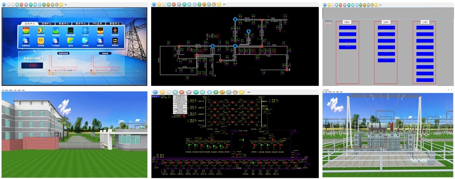 電網(wǎng)/變電站聯(lián)合仿真系統(tǒng),以電網(wǎng)主干網(wǎng)為基本電網(wǎng)框架、地區(qū)電力網(wǎng)絡、電廠、變電站等仿真區(qū)域電網(wǎng)以及變電站一次設備及現(xiàn)場環(huán)境以3D仿真為主,完成現(xiàn)場設備的倒閘操作、運行監(jiān)視、設備巡視、異常與事故處理、變電設備運維、工作許可終結(jié)驗收和智能教員學員管理軟件等,同時變電站仿真系統(tǒng)還具有模擬PMS界面的業(yè)務流程記錄功能。圖像、聲音與仿真過程同步,仿真效果逼真。