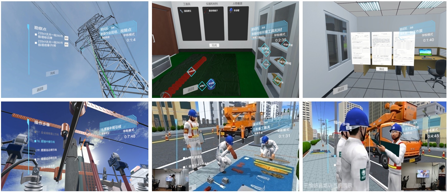 電力系統設備規模大、種類多,且更新快。電力系統的智能化需要技術人員快速及時地掌握設備維護、巡視、檢測、部件更換以及現場調配等專業技能?,F場培訓和實地操作能夠取得理想的教學效果。傳統的電力培訓不可能利用實際運行設備進行,實際運行的設備需要保證安全正常運轉,只能用于參觀展示,動手操作限制很多,無法滿足教學與培訓需求,缺乏真實體驗感?;赩R沉浸式顯示互動技術,采用三維虛擬仿真技術、虛擬互動技術、三維建模技術等,以檢修科目的過程為業務依據,將操作要點與VR虛擬互動設備緊密結合,營造身臨其境的虛擬互動操作效果,達到集仿真操作體驗、檢修業務培訓于一體的教學培訓目標。